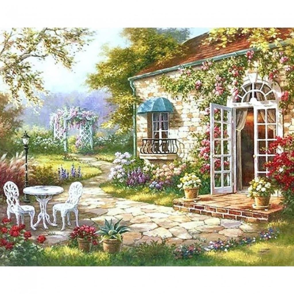 Kanvas Sayılarla Boyama Seti Kasnaklı-çerçeveli Keyif Bahçesi Boyama