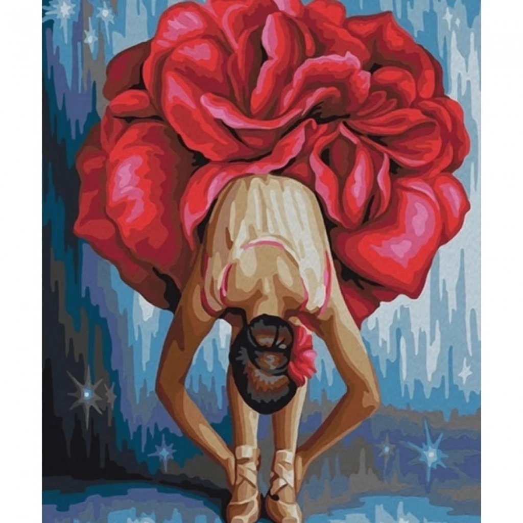 Kanvas Sayılarla Boyama Seti Kasnaklı-çerçeveli Kırmızı Çiçekli Balerin