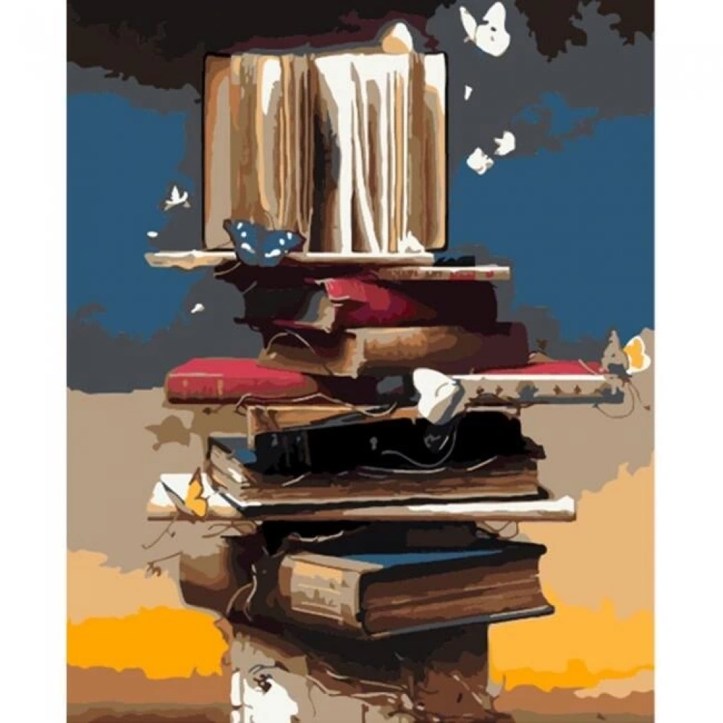 Kanvas Sayılarla Boyama Seti Kasnaklı-çerçeveli Kitap Kulesi Sayılarla Boyama