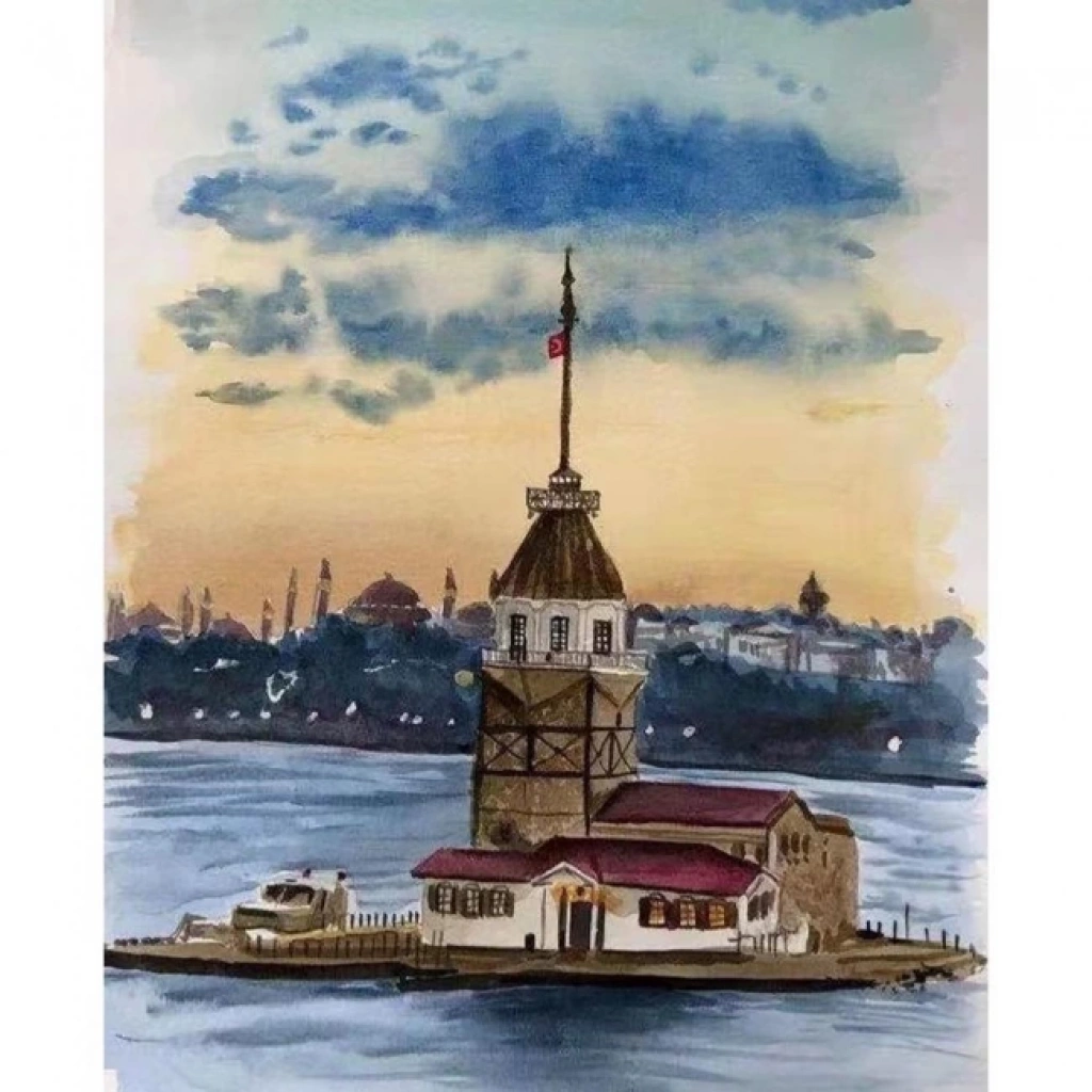 Kanvas Sayılarla Boyama Seti Kasnaklı-çerçeveli Kız Kulesi 3