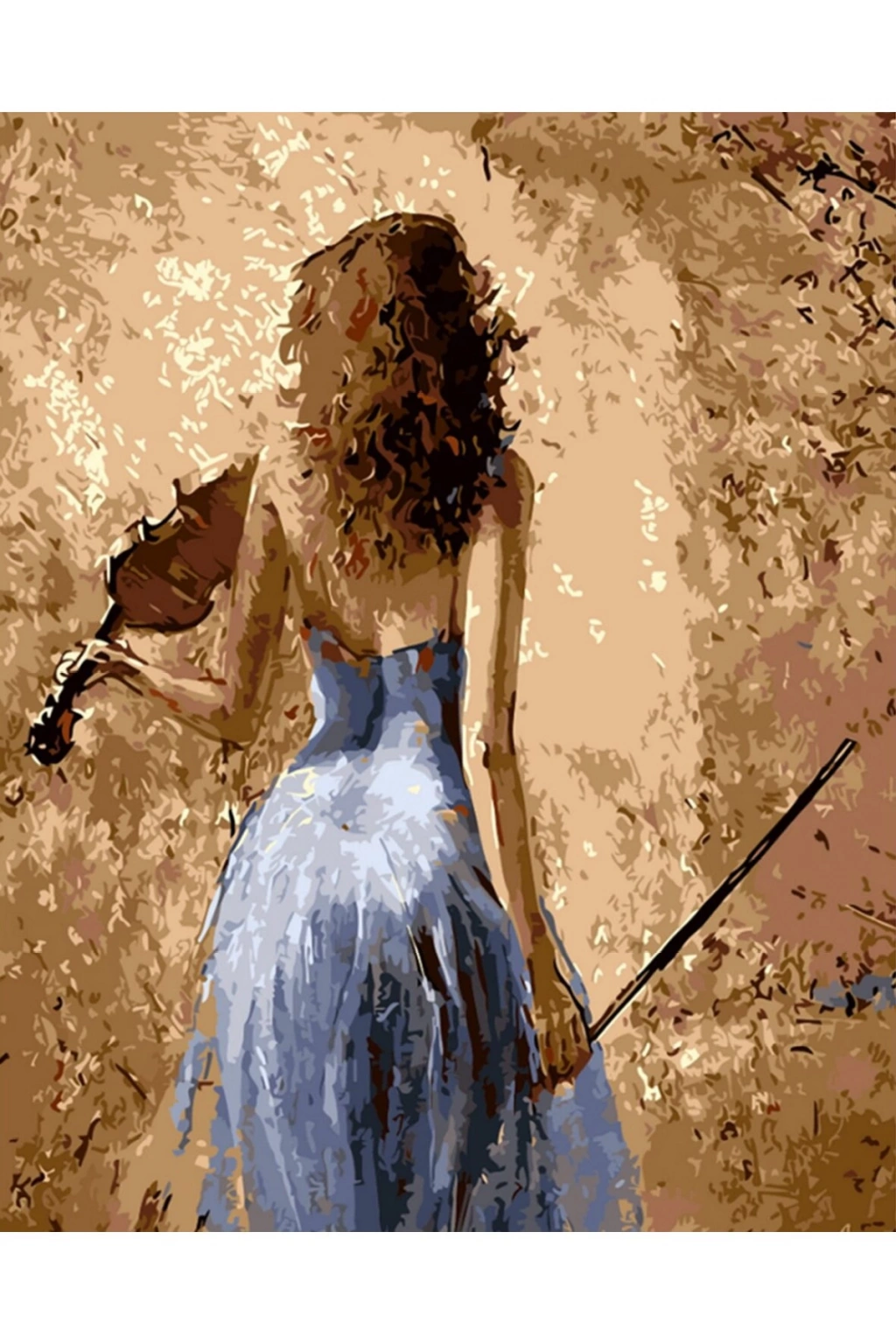 Kanvas Sayılarla Boyama Seti Kasnaklı-çerçeveli Kızıl Kemancı