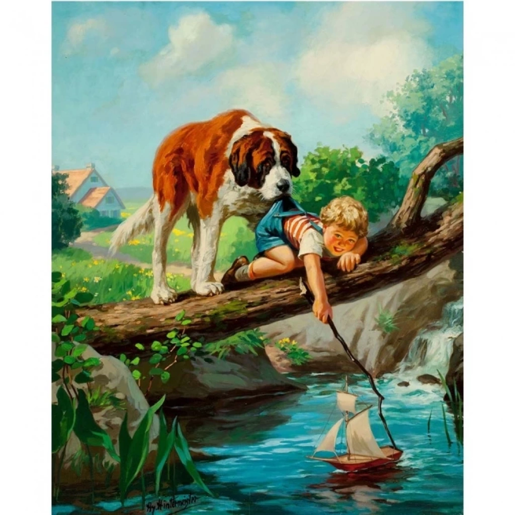Kanvas Sayılarla Boyama Seti Kasnaklı-çerçeveli Köpek Ve Çocuğun Dostluğu