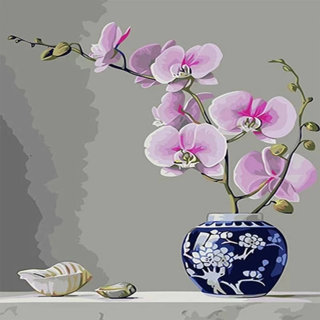 Kanvas Sayılarla Boyama Seti Kasnaklı-çerçeveli Masadaki Vazo Naturel