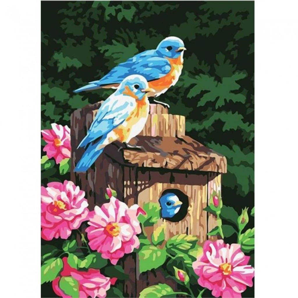 Kanvas Sayılarla Boyama Seti Kasnaklı-çerçeveli Mavi Kuşlar Ve Çiçekler