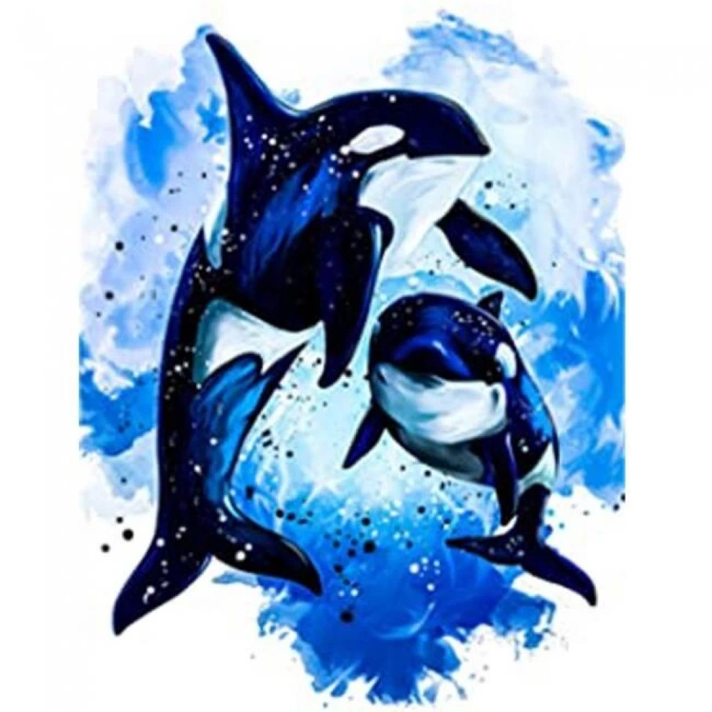 Kanvas Sayılarla Boyama Seti Kasnaklı-çerçeveli Mavi Sular Ve Orca