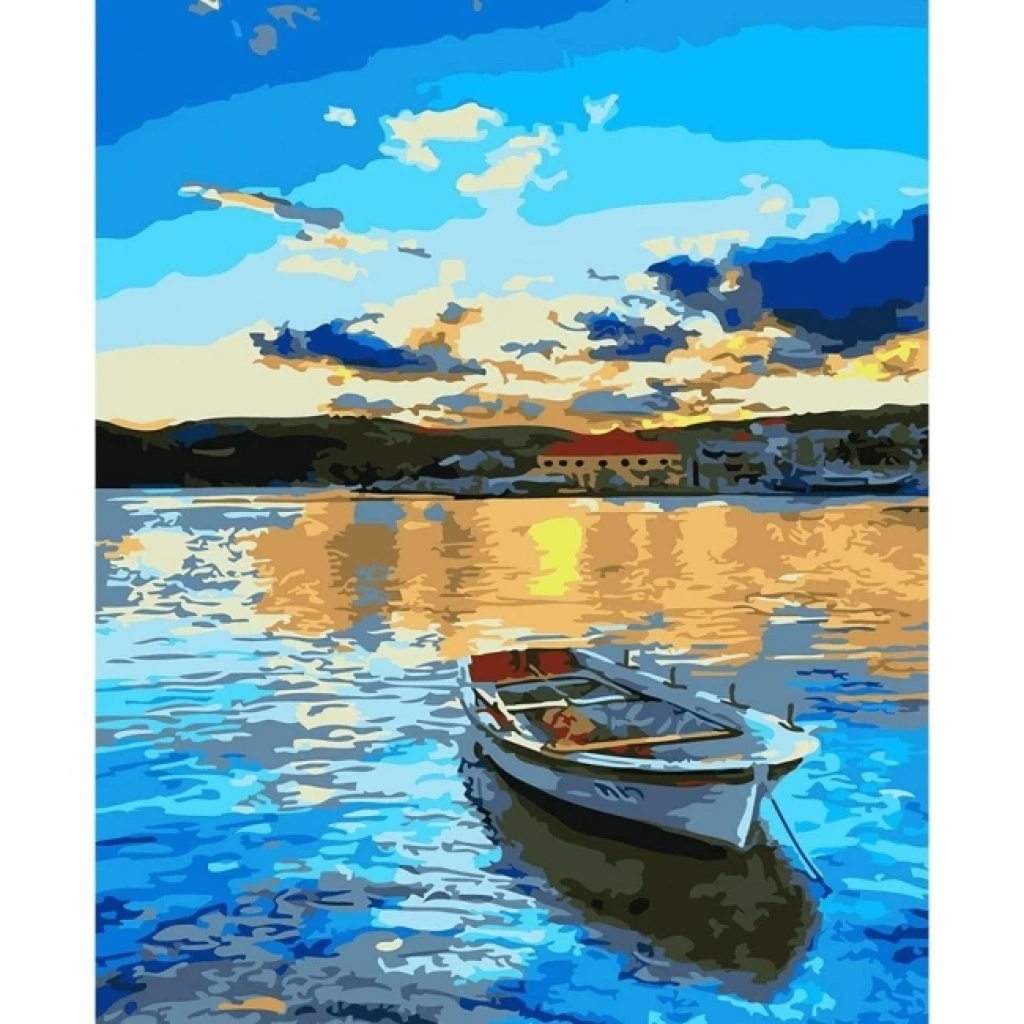 Kanvas Sayılarla Boyama Seti Kasnaklı-çerçeveli Mavi Sular Ve Tekne