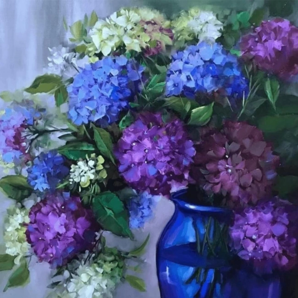 Kanvas Sayılarla Boyama Seti Kasnaklı-çerçeveli Mavi Vazodaki Ortanca