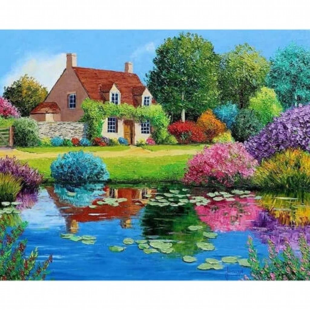 Kanvas Sayılarla Boyama Seti Kasnaklı-çerçeveli Renkli Cennet Evi