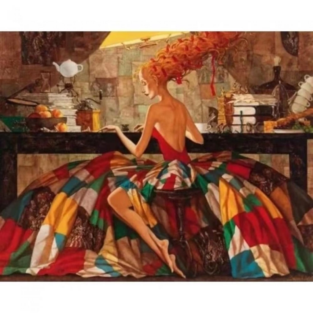 Kanvas Sayılarla Boyama Seti Kasnaklı-çerçeveli Renkli Kadın 3