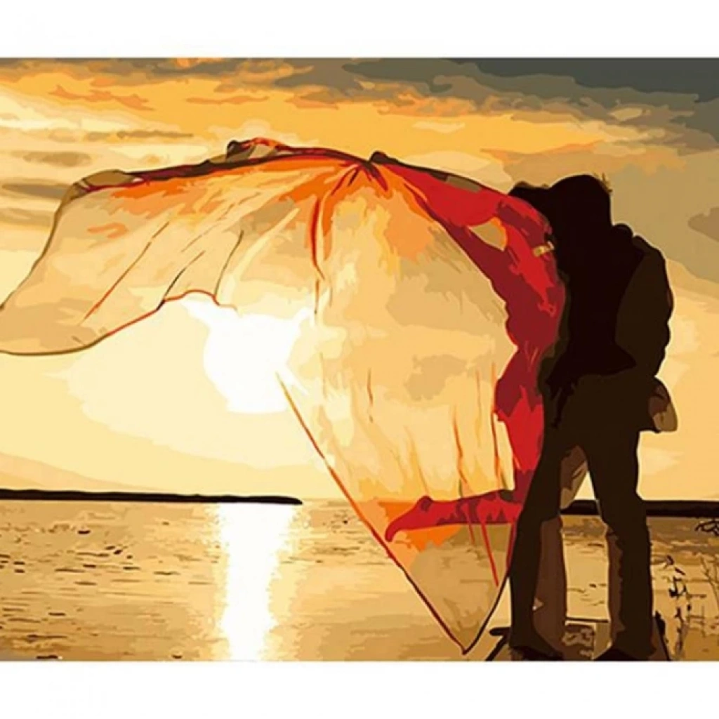 Kanvas Sayılarla Boyama Seti Kasnaklı-çerçeveli Romantik Gün Batımı