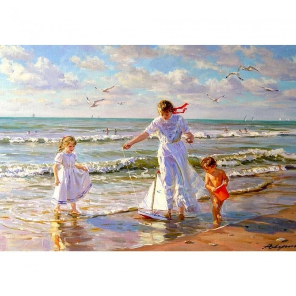Kanvas Sayılarla Boyama Seti Kasnaklı-çerçeveli Sahilde Gezi