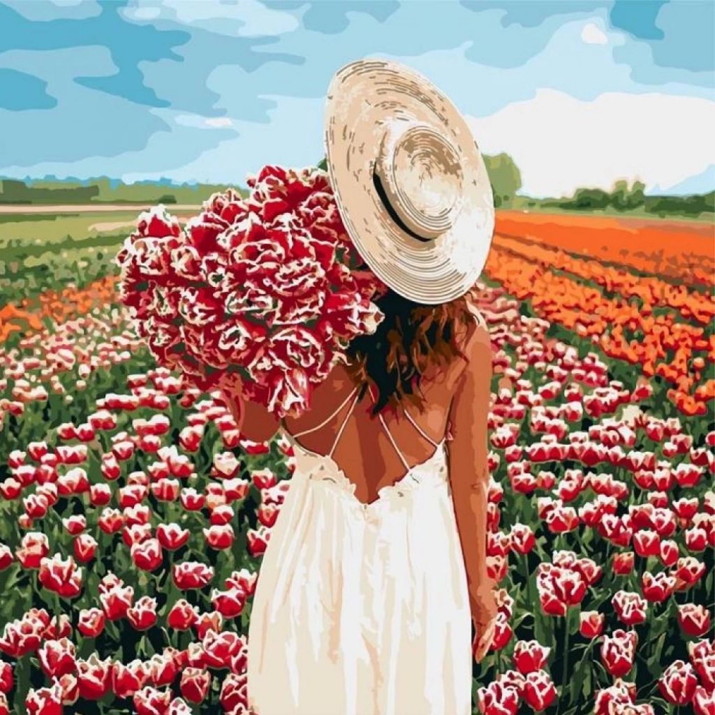 Kanvas Sayılarla Boyama Seti Kasnaklı-çerçeveli Şapkalı Çiçek Toplayan Kız Sayılarla Boyama