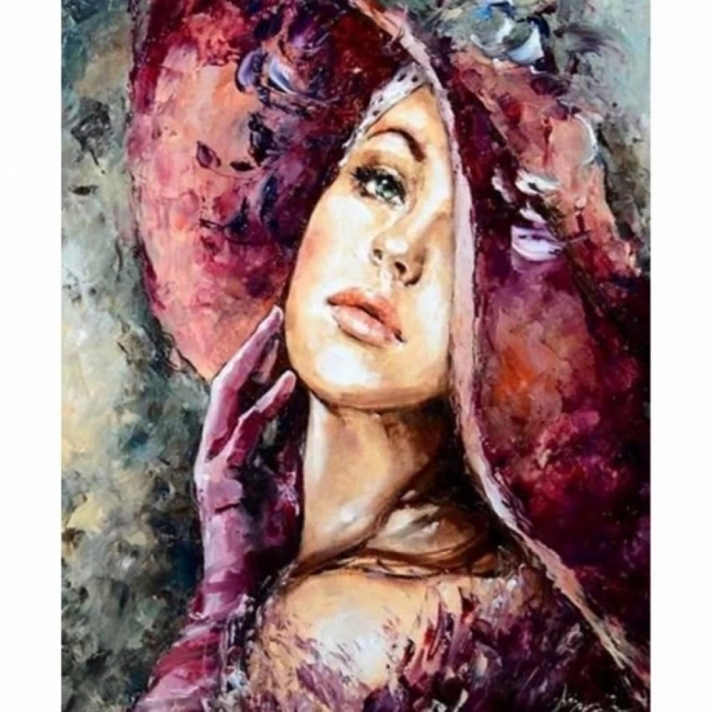 Kanvas Sayılarla Boyama Seti Kasnaklı-çerçeveli Şapkalı Kadın 3
