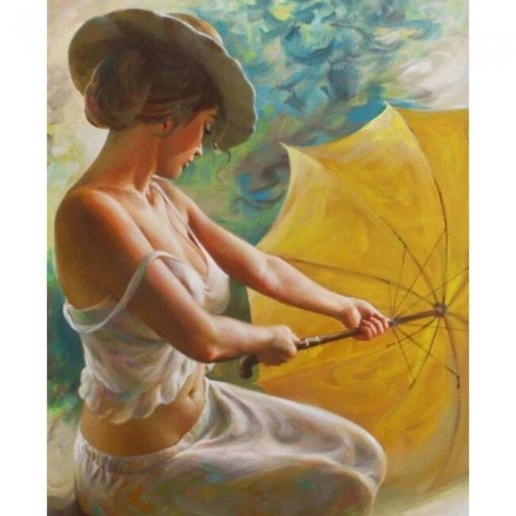Kanvas Sayılarla Boyama Seti Kasnaklı-çerçeveli Sarı Şemsiyeli Güzel