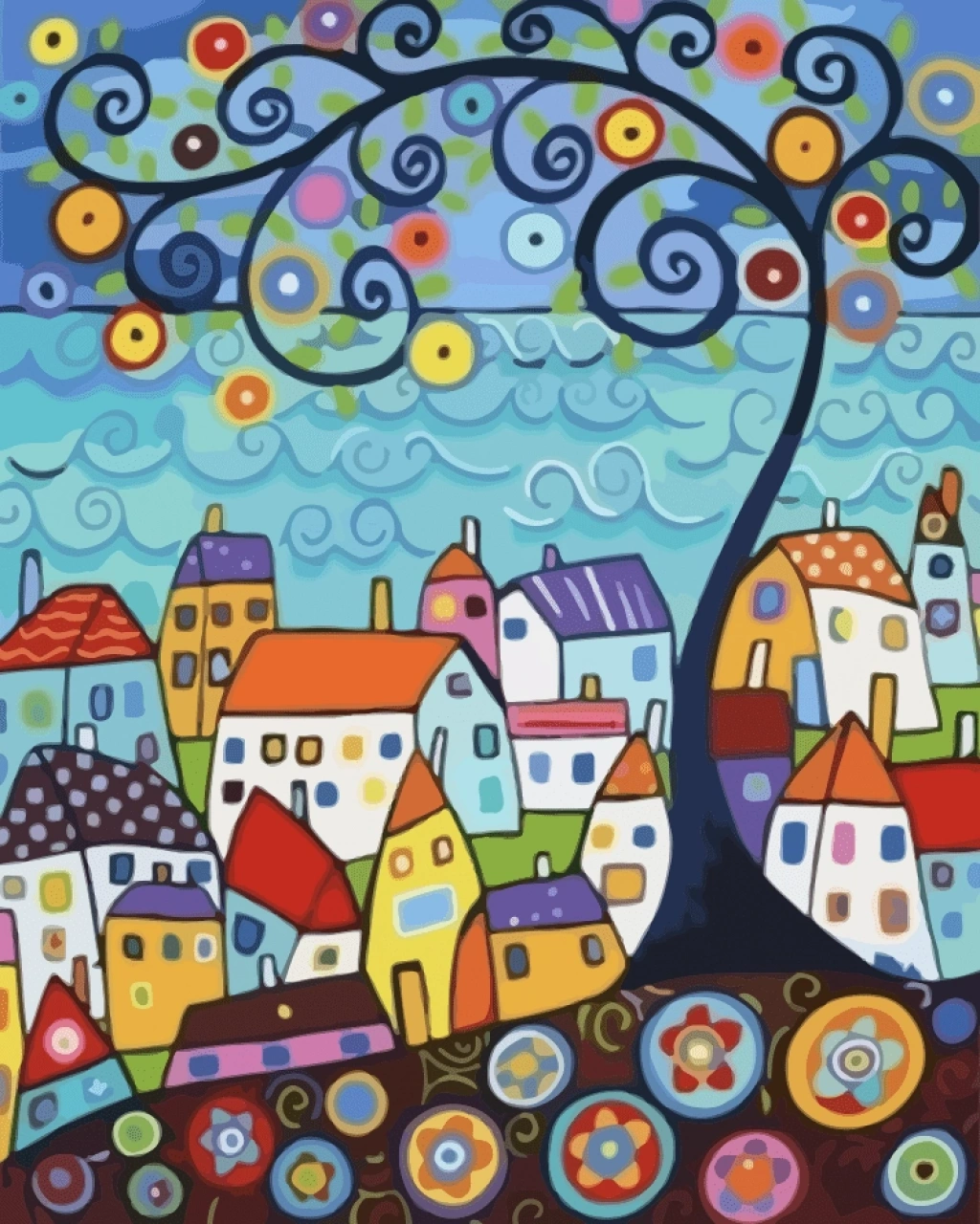 Kanvas Sayılarla Boyama Seti Kasnaklı-çerçeveli Sarmal Evler Sayılarla Boyama