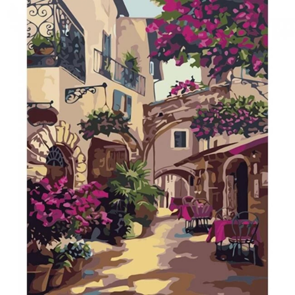 Kanvas Sayılarla Boyama Seti Kasnaklı-çerçeveli Sokak Arasındaki Restoran Sayılarla Boyama