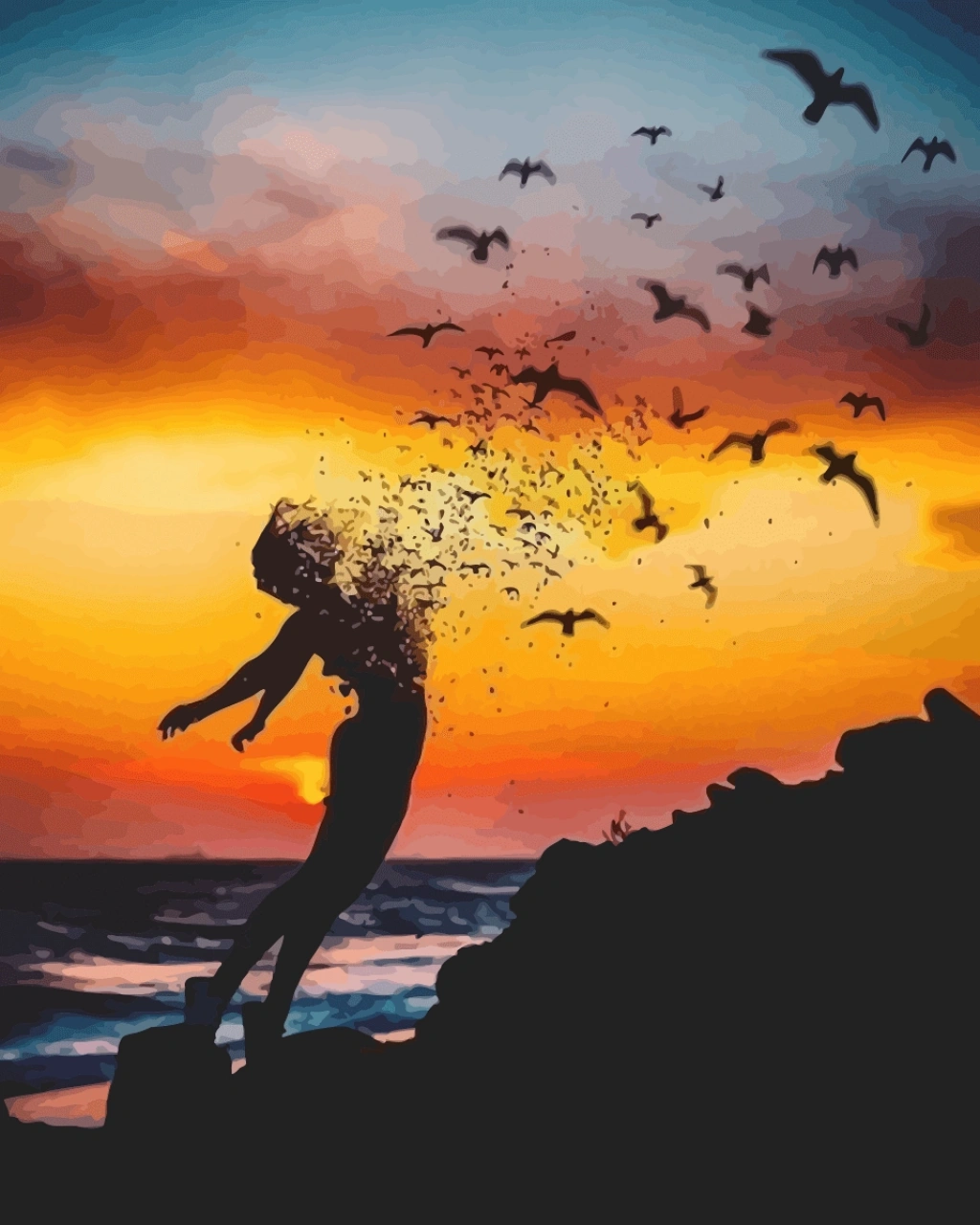 Kanvas Sayılarla Boyama Seti Kasnaklı-çerçeveli Uçan Kadın 3 Sayılarla Boyama