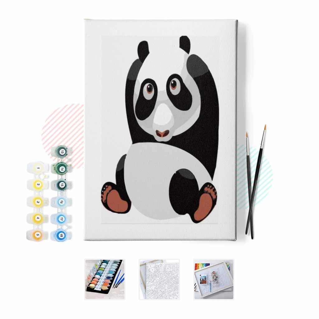 Kanvas Sayılarla Boyama Seti Kasnaklı-çerçeveli Uykulu Panda