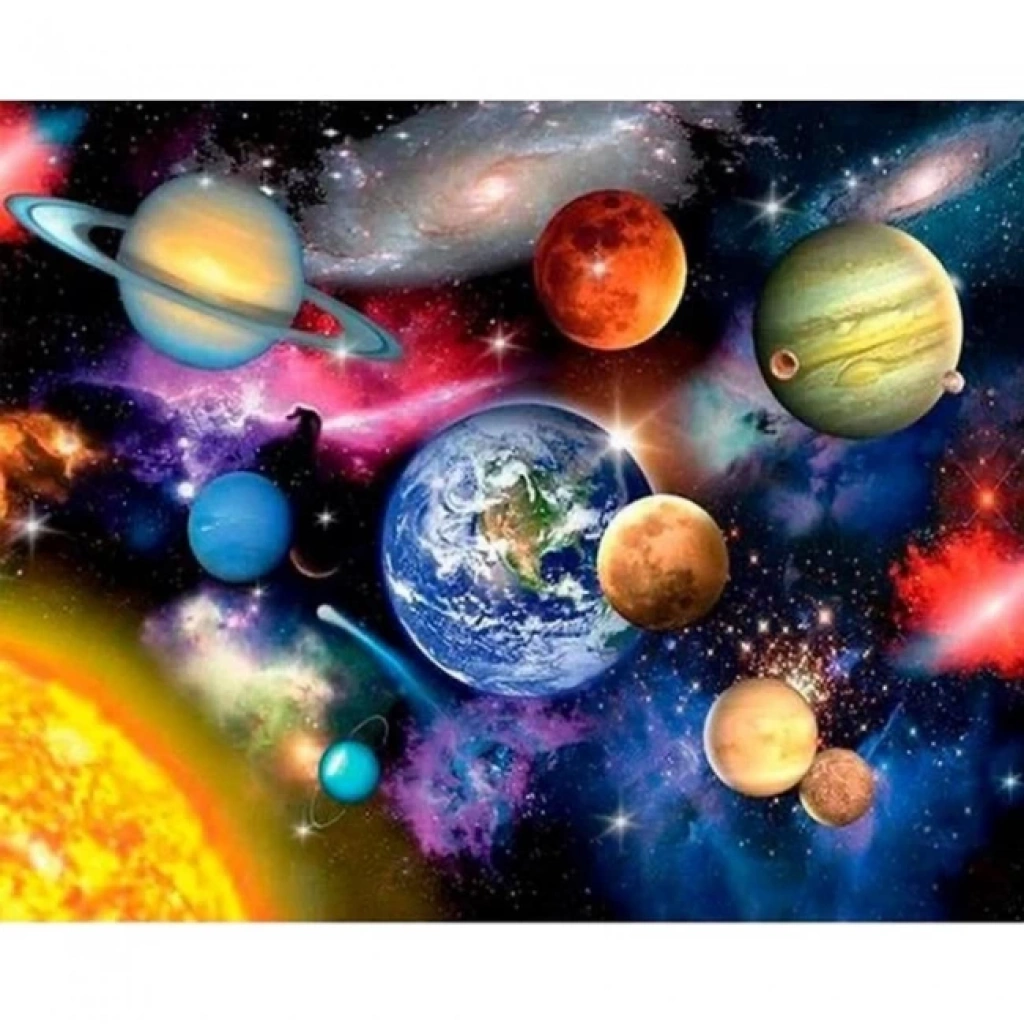 Kanvas Sayılarla Boyama Seti Kasnaklı-çerçeveli Uzay Ve Gezegenler