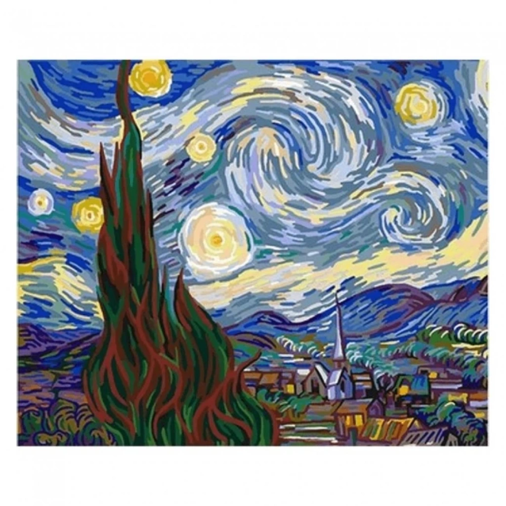 Kanvas Sayılarla Boyama Seti Kasnaklı-çerçeveli Van Gogh Yıldızlı Geceler