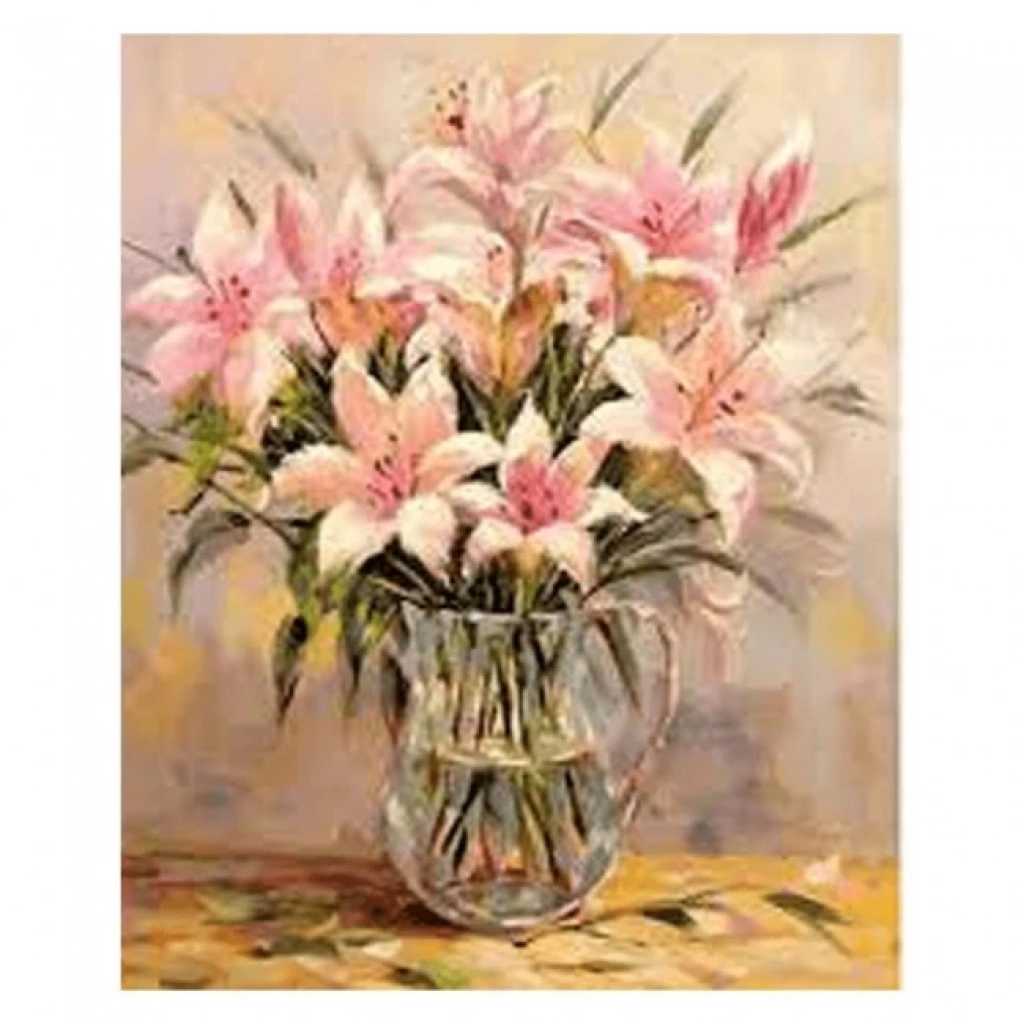 Kanvas Sayılarla Boyama Seti Kasnaklı-çerçeveli Vazodaki Zambaklar