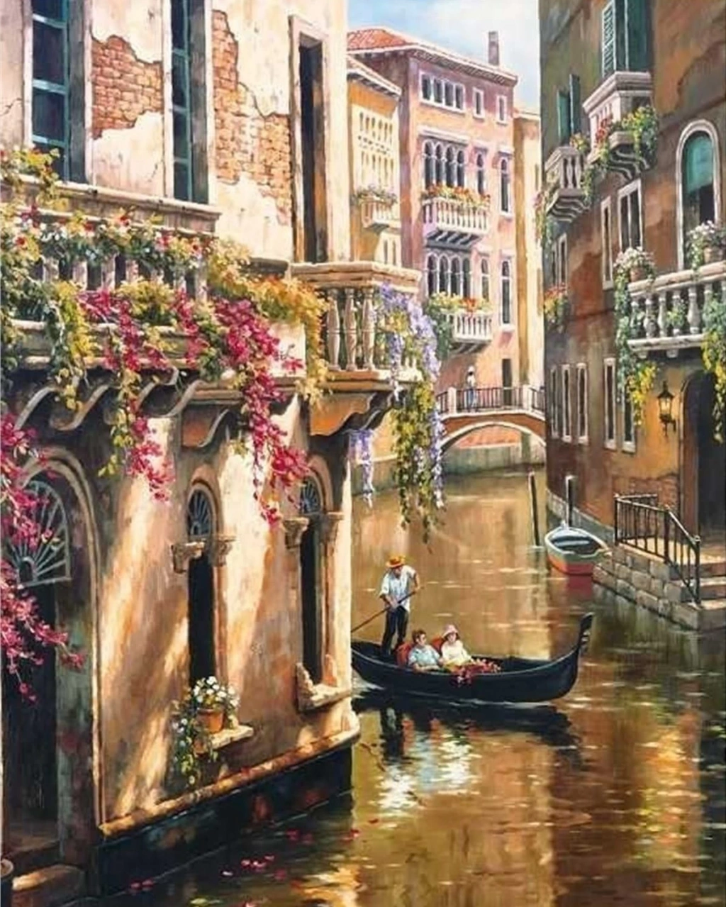 Kanvas Sayılarla Boyama Seti Kasnaklı-çerçeveli Venedik Kanal Gezisi
