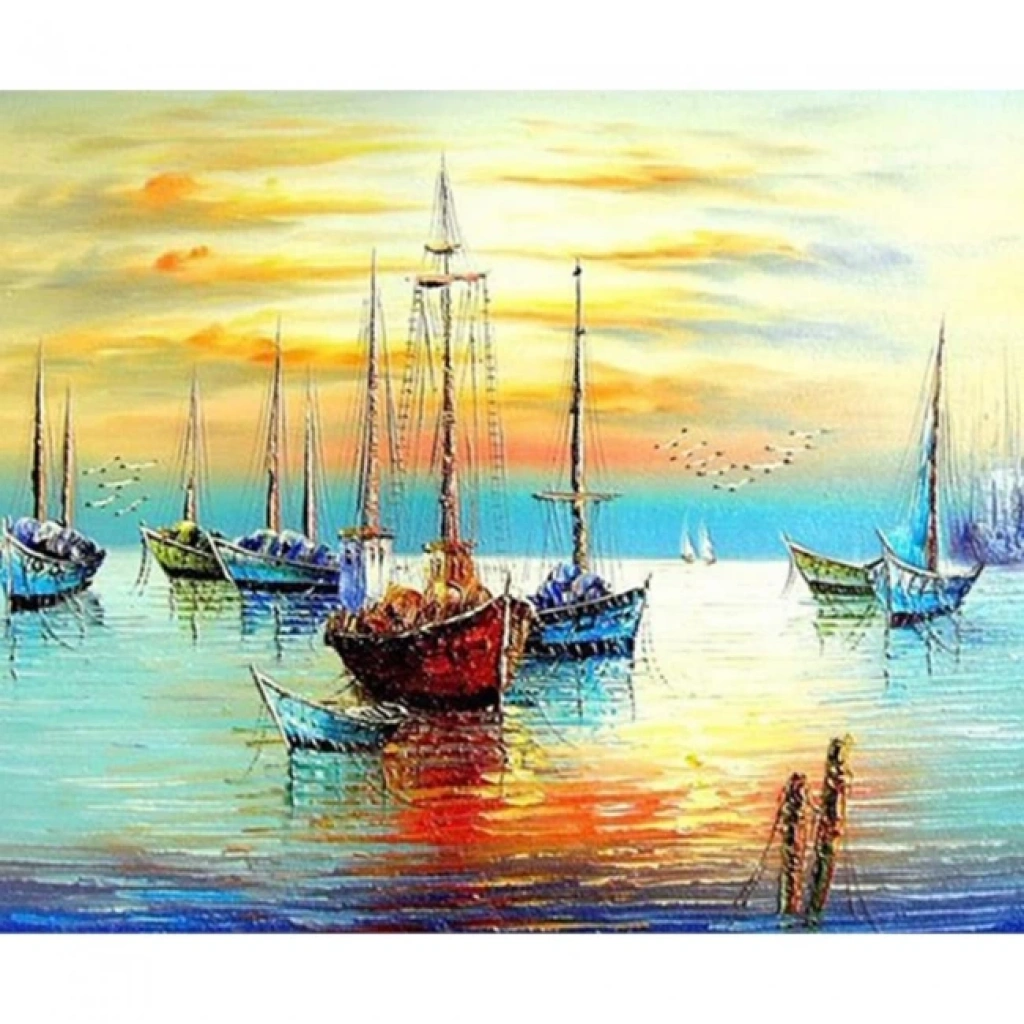 Kanvas Sayılarla Boyama Seti Kasnaklı-çerçeveli Yelken
