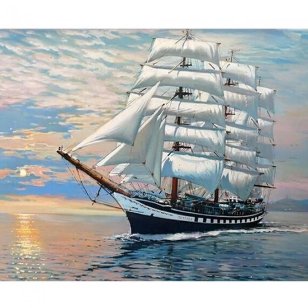 Kanvas Sayılarla Boyama Seti Kasnaklı-çerçeveli Yelkenli Gemi