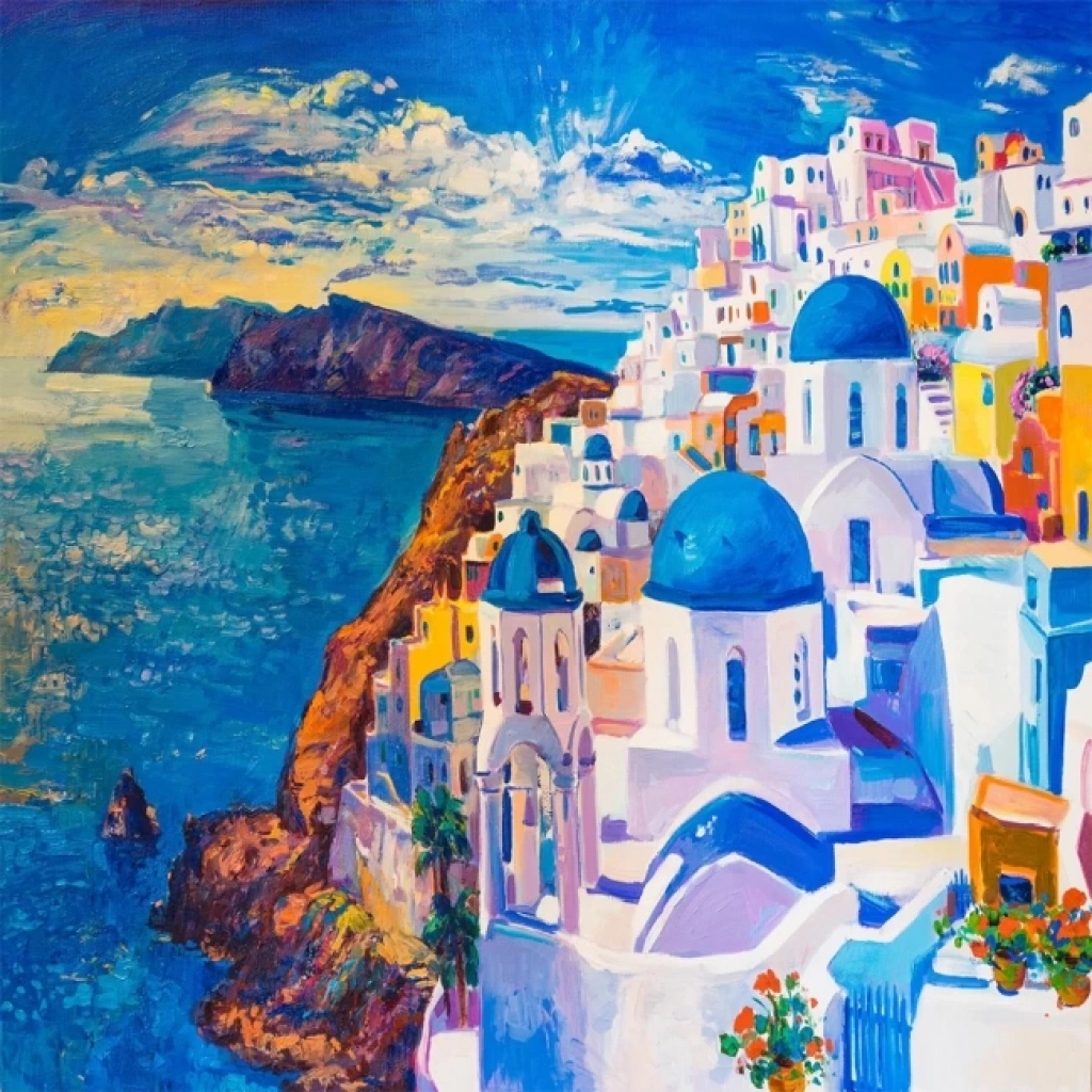 Kanvas Sayılarla Boyama Seti Kasnaklı-çerçeveli Yunanistan Evleri