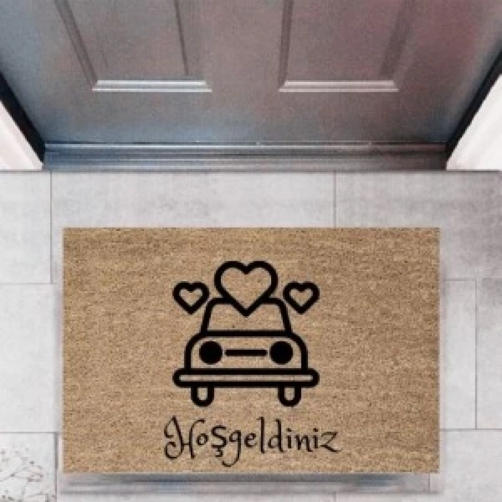 Kapı Önü Paspası Kişiye Özel Yazı Yazılır Koko Model Kalp Çiçek Desenli Pk-1515