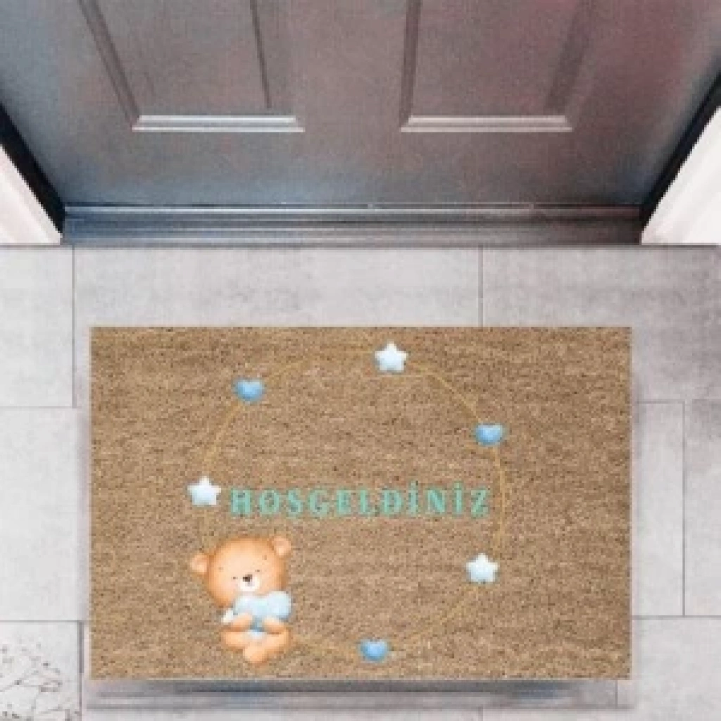Kapı Önü Paspası Özel Tasarım Koko Model Sevimli Ayı Hoşgeldiniz Pk-1517