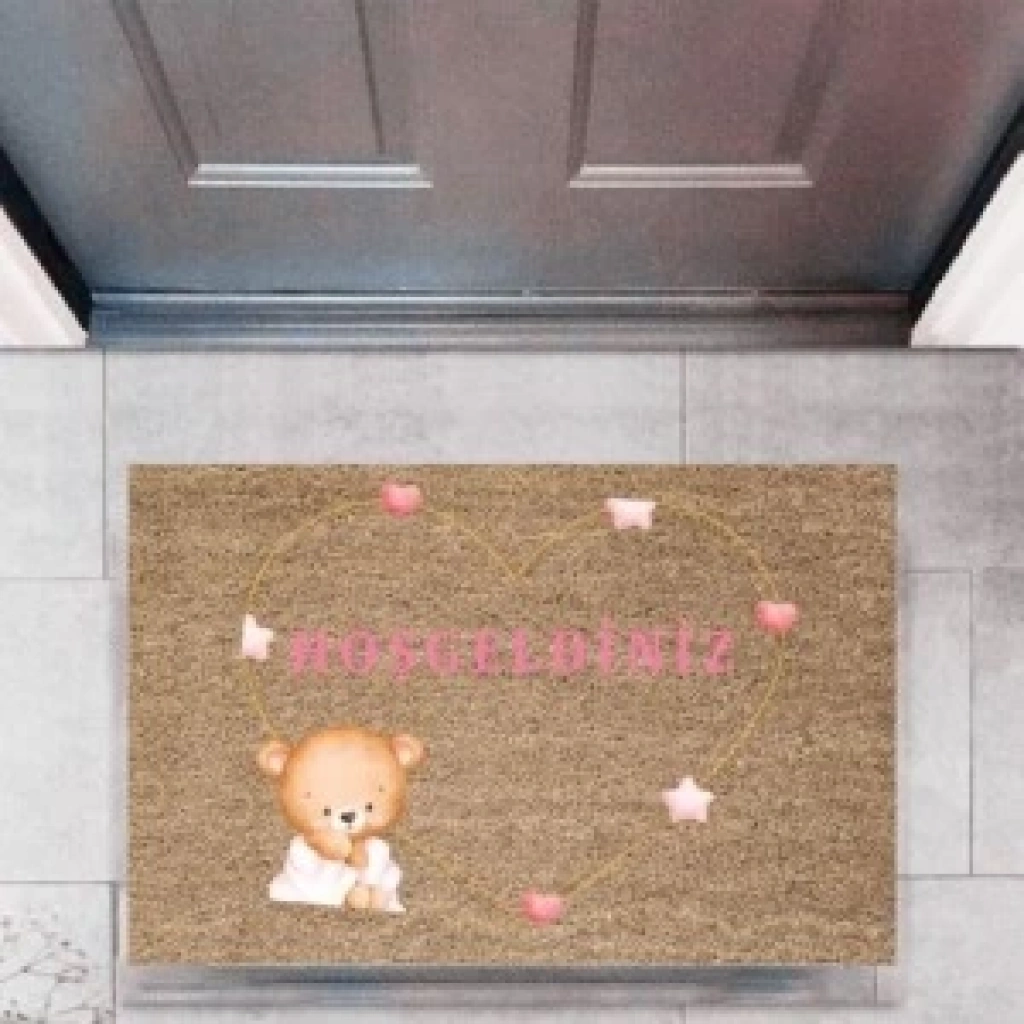Kapı Önü Paspası Özel Tasarım Koko Model Sevimli Ayı Hoşgeldiniz Pk-1517