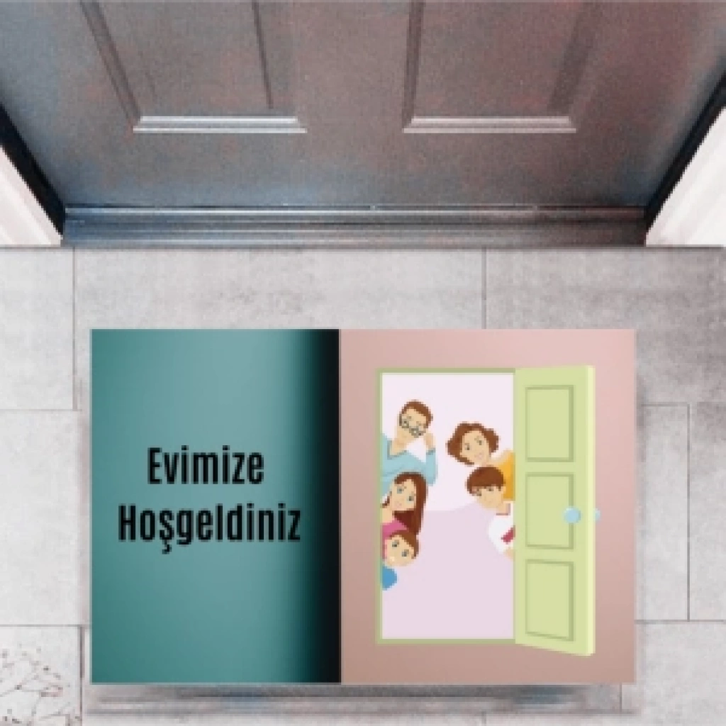 Kapı Önü Paspası Dekoratif Dijital Baskı Evimize Hoşgeldiniz P-2335