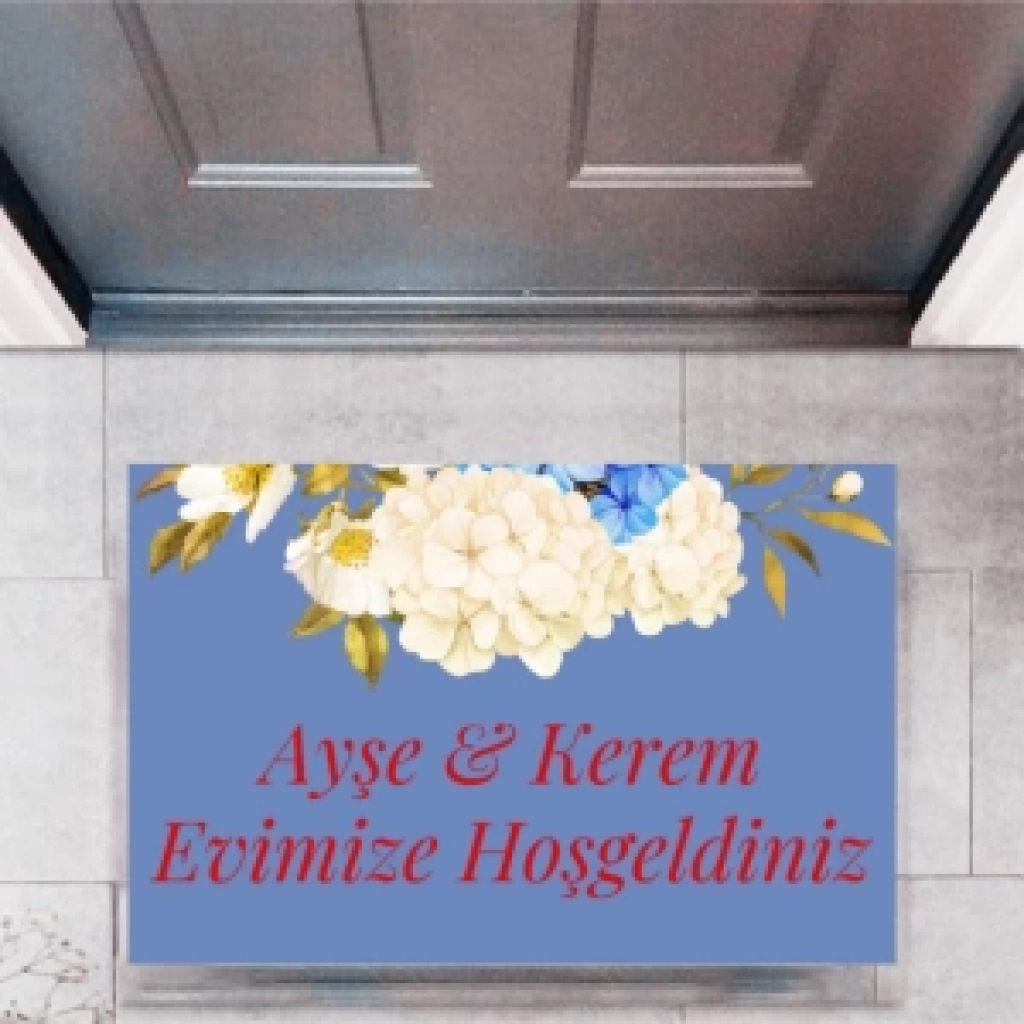 Kapı Önü Paspası Kişiye Özel Yazı Yazılır Koko Model Çiçek Şerit Pk-1526