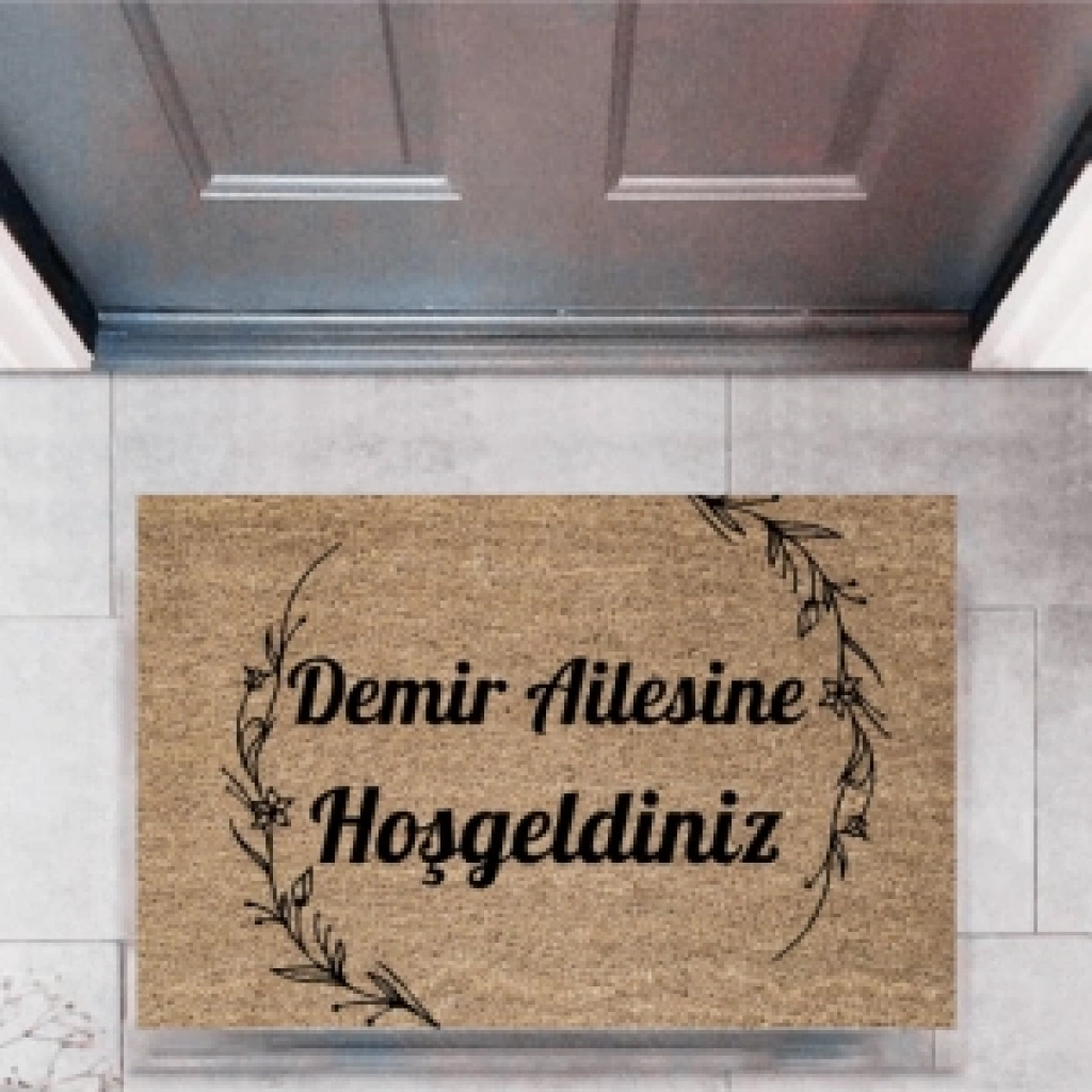 Kapı Önü Paspası Kişiye Özel Yazı Yazılır Koko Model Çiçek Şerit Pk-1526