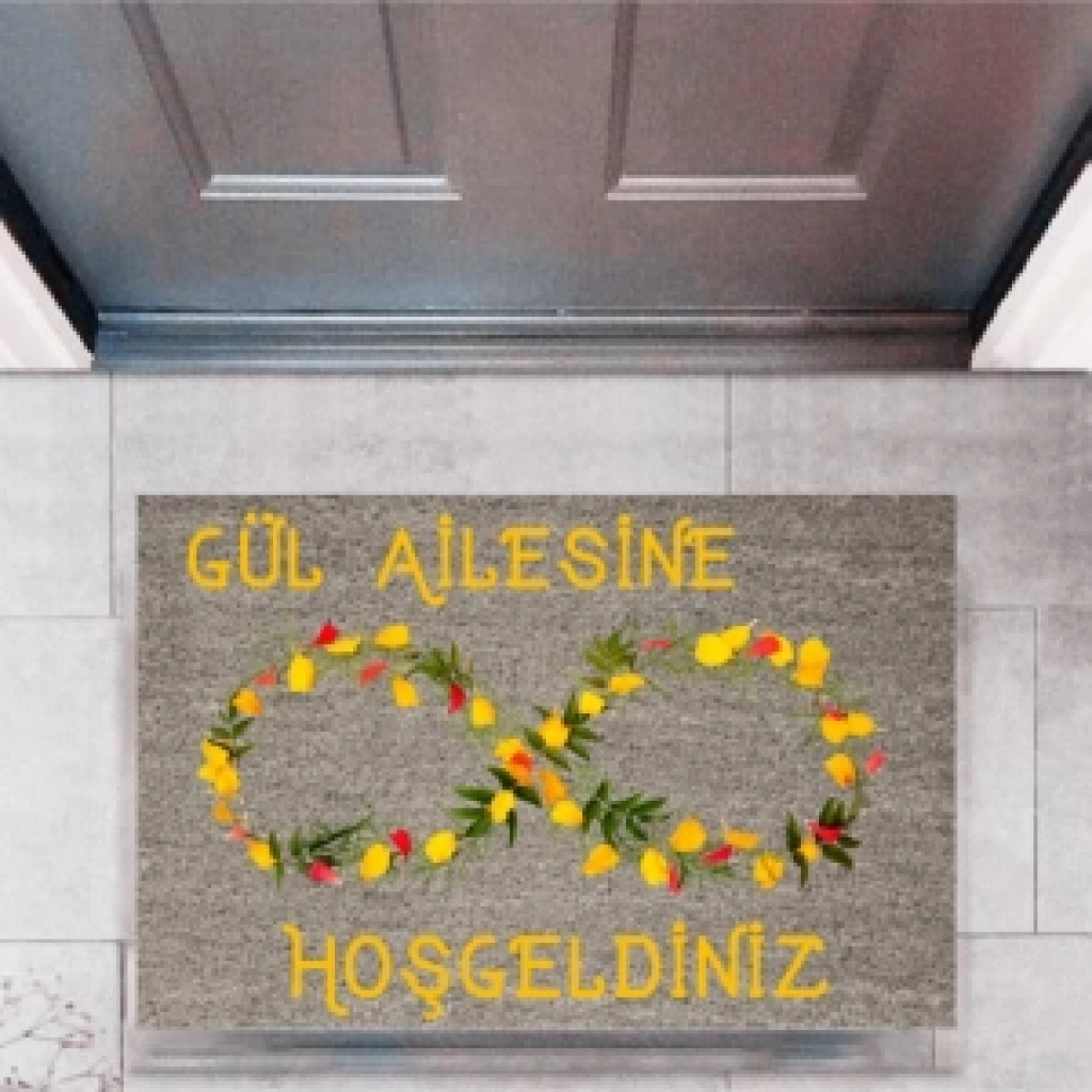 Kapı Önü Paspası Kişiye Özel Yazı Yazılır Koko Model Çiçek Şerit Pk-1526
