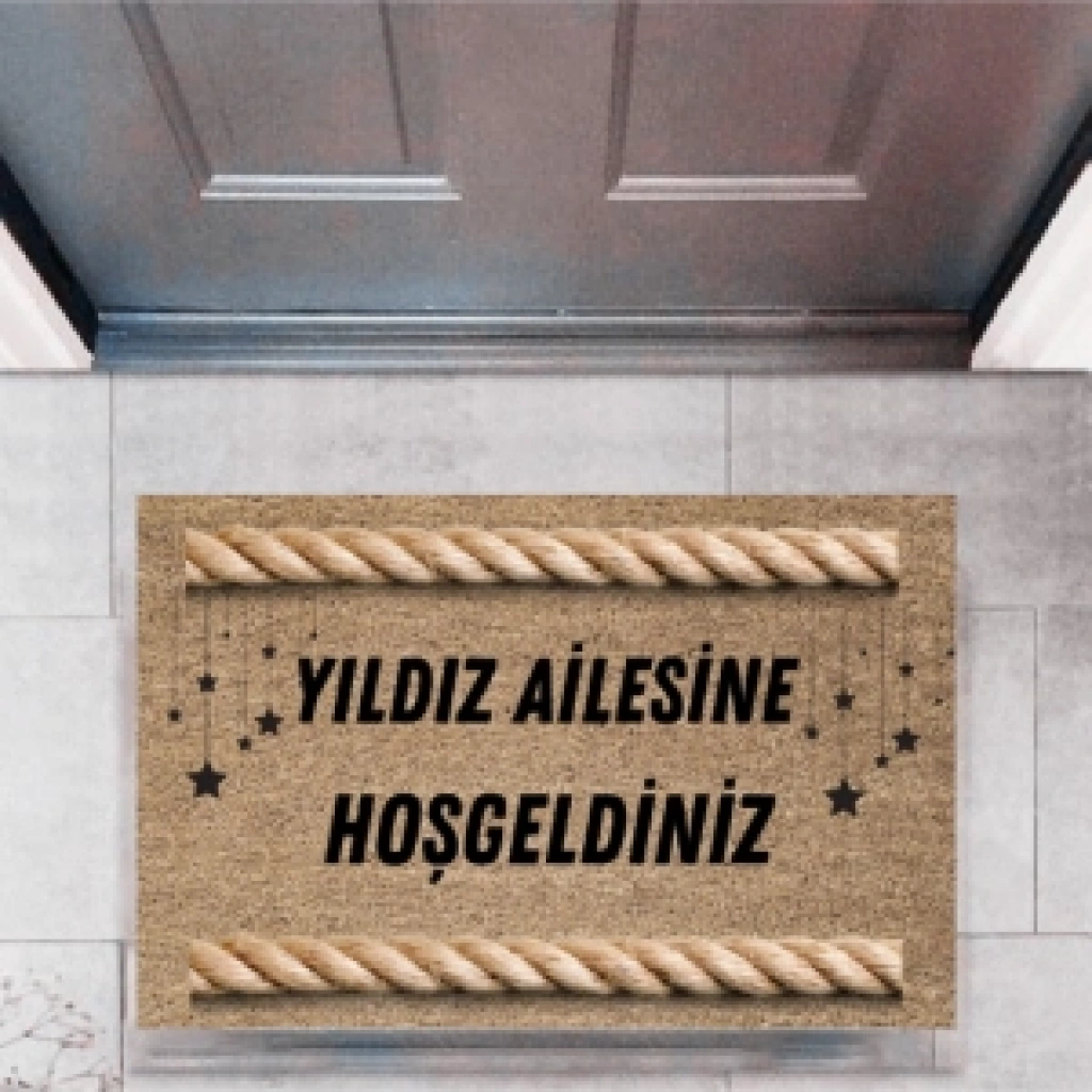Kapı Önü Paspası Kişiye Özel Yazı Yazılır Koko Model Çiçek Şerit Pk-1526