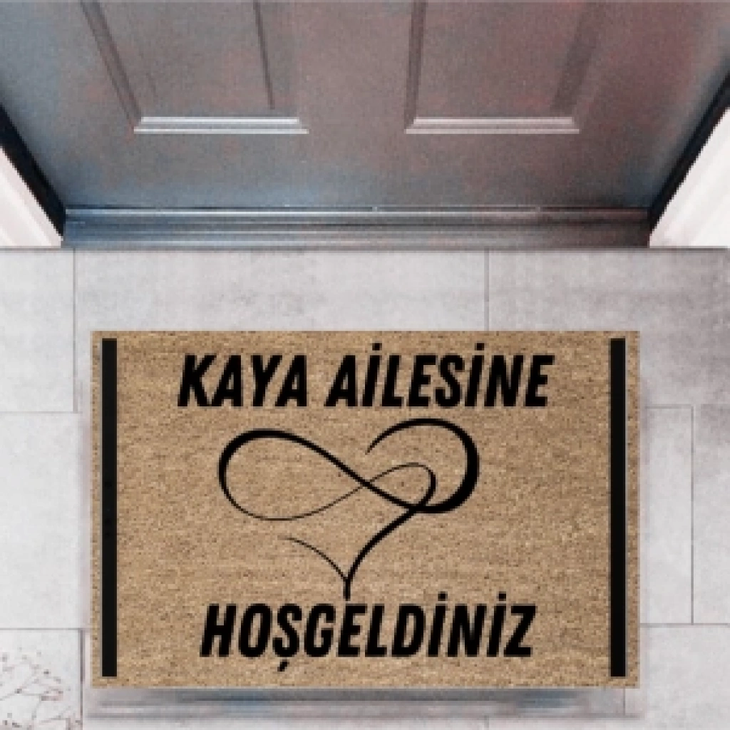 Kapı Önü Paspası Kişiye Özel Yazı Yazılır Koko Model Kalp Çiçek Desenli Pk-1515