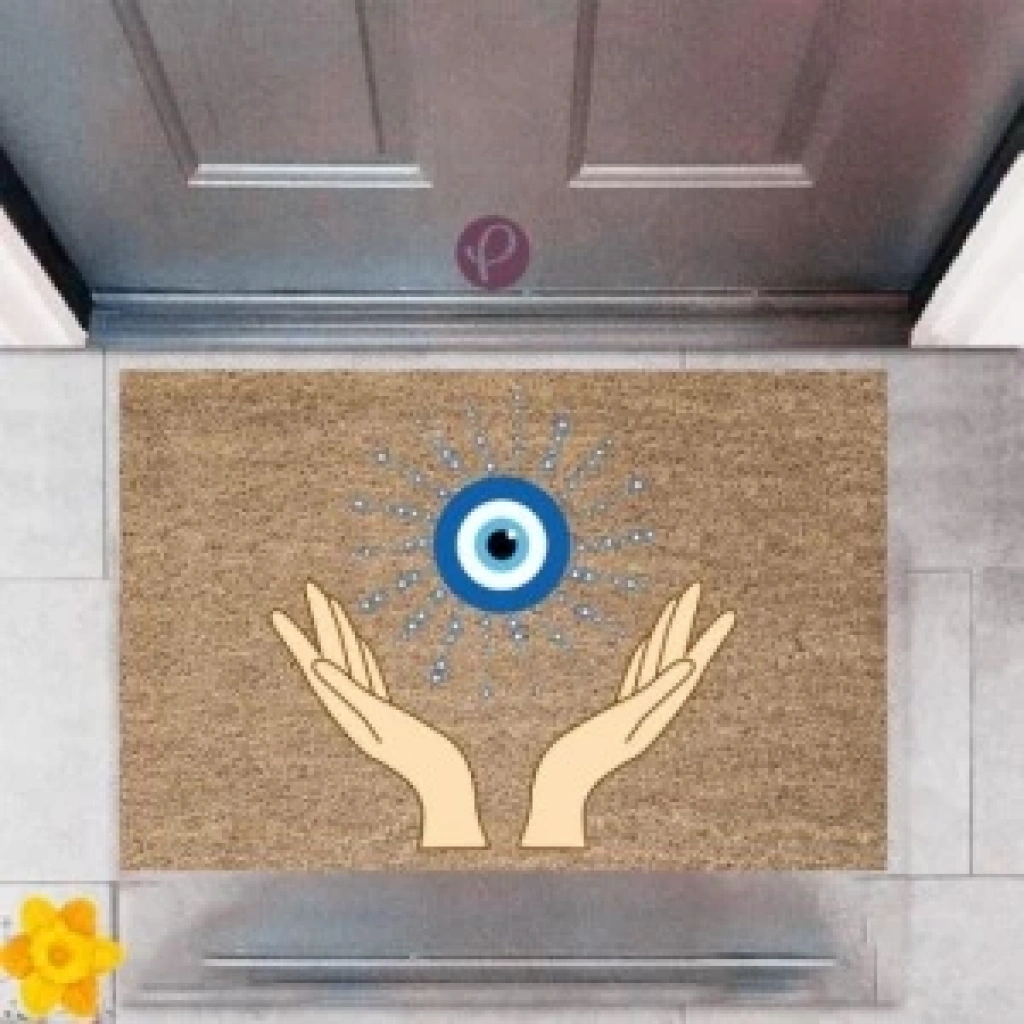 Kapı Önü Paspası Dekoratif Dijital Baskı Nazar Boncuğu P-2490