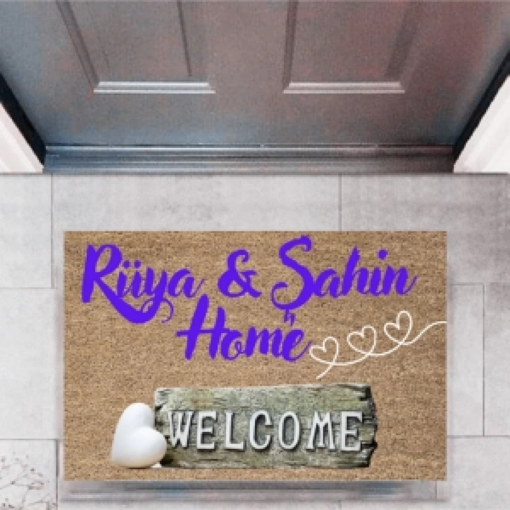 Kapı Önü Paspası Kişiye Özel Yazı Yazılır Koko Model Kalp Çiçek Desenli Pk-1515