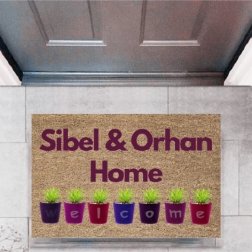 Kapı Önü Paspası Kişiye Özel Yazı Yazılır Koko Model Çiçek Şerit Pk-1526