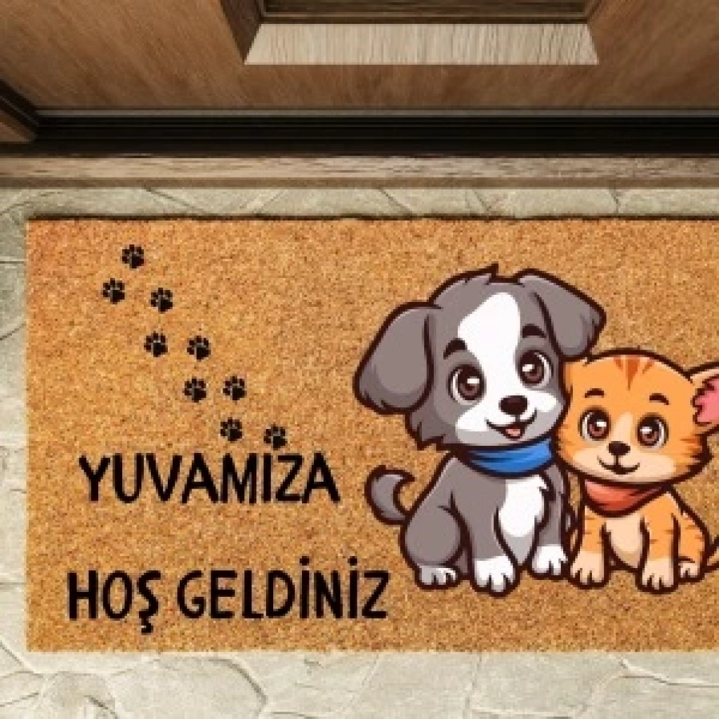 Kapı Önü Paspası Özel Tasarım Koko Model Ailemize Hoşgeldiniz Pati Dostlar Pk-1512