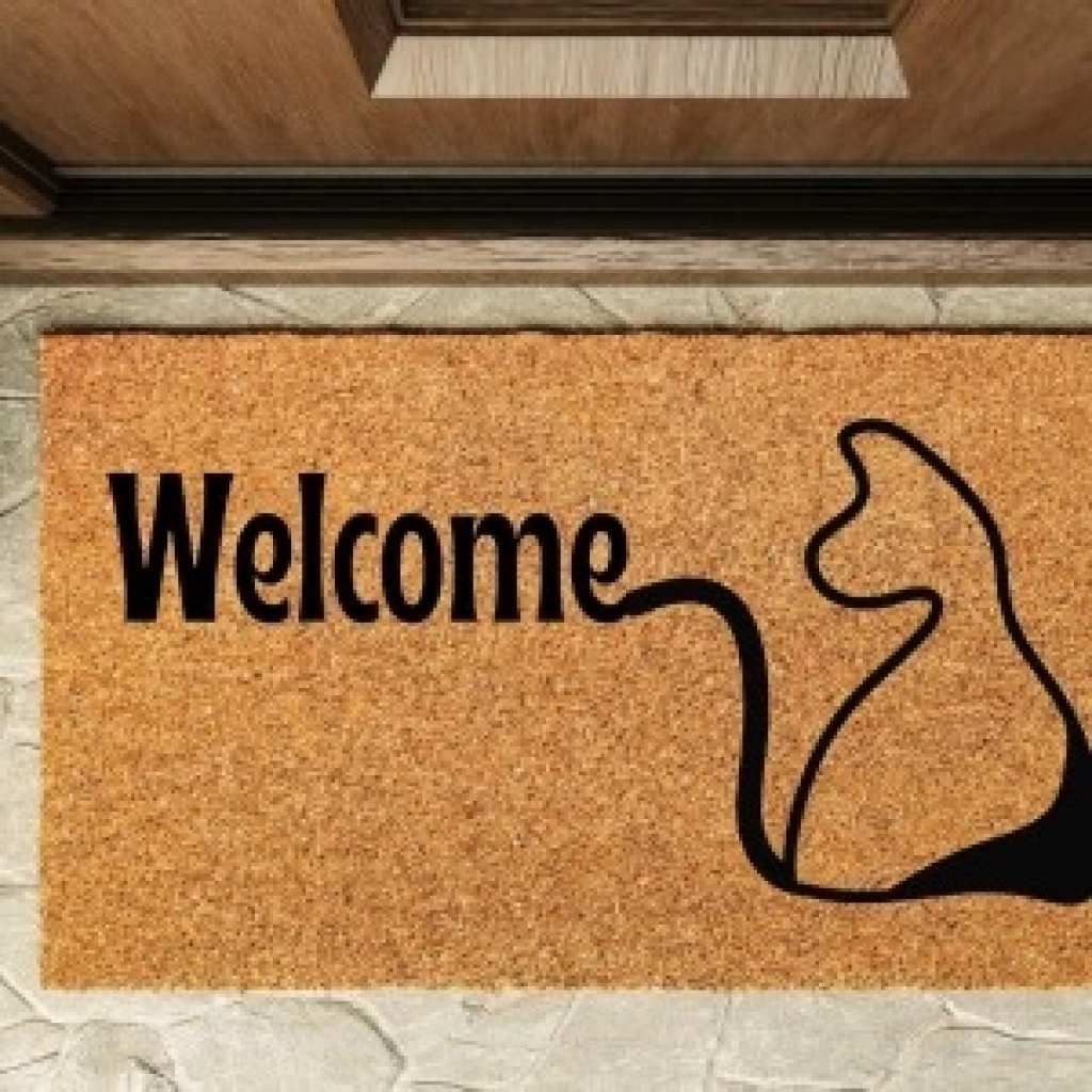 Kapı Önü Paspası Özel Tasarım Koko Model Welcome Kedi Pk-1594