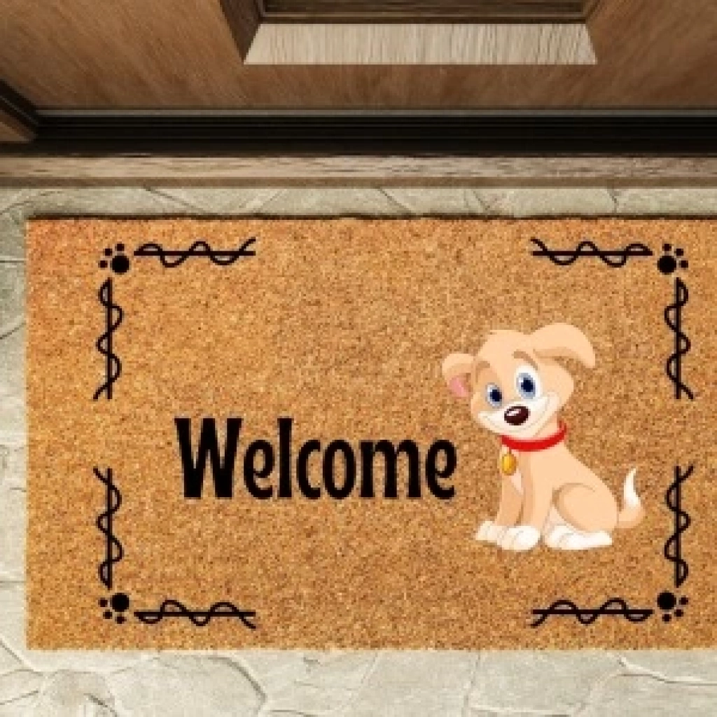 Kapı Önü Paspası Özel Tasarım Koko Model Welcome Köpek Pk-1595