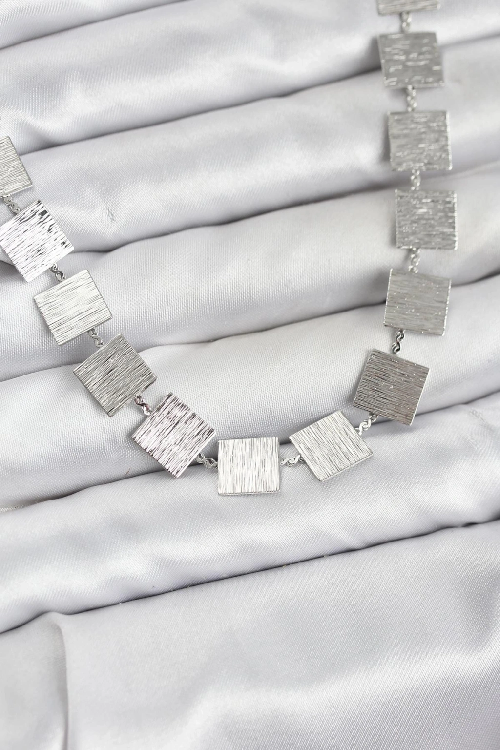Kare Plaka Model Gümüş Renk Kadın Kolye