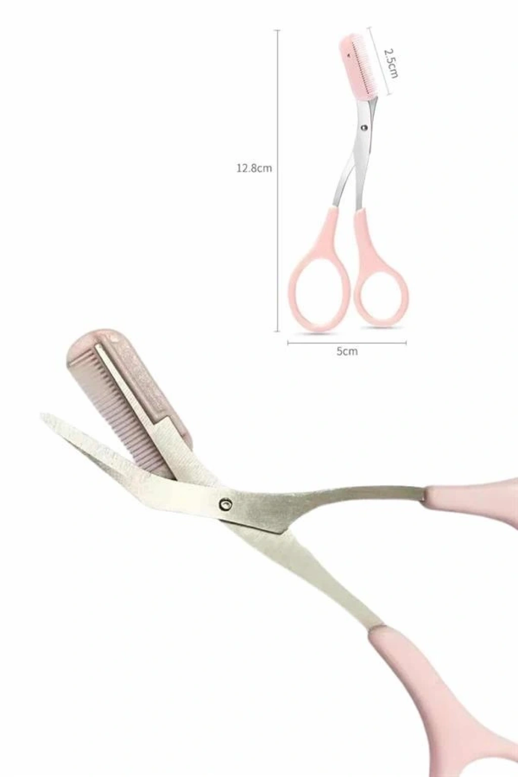 Kisli Kaş Kirpik Düzeltici Bıyık Alma Taraklı Kaş Makası Yüz Bakım Seti Makas
