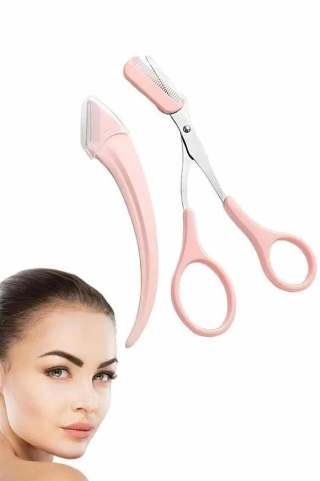 Taraklı Kaş Bıyık Makası Ve Kaş Ustura Seti Kaş Bıyık Tüy Alma Epilasyon Aleti 2'li Set
