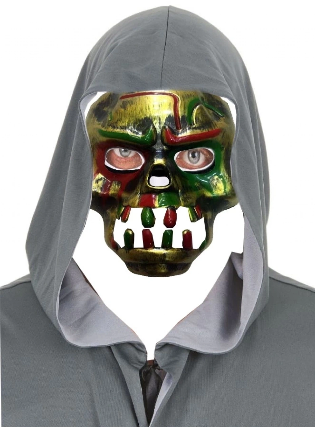 Kırmızı Kanlı Dişli Dracula Kafatası Maskesi Altın Renk