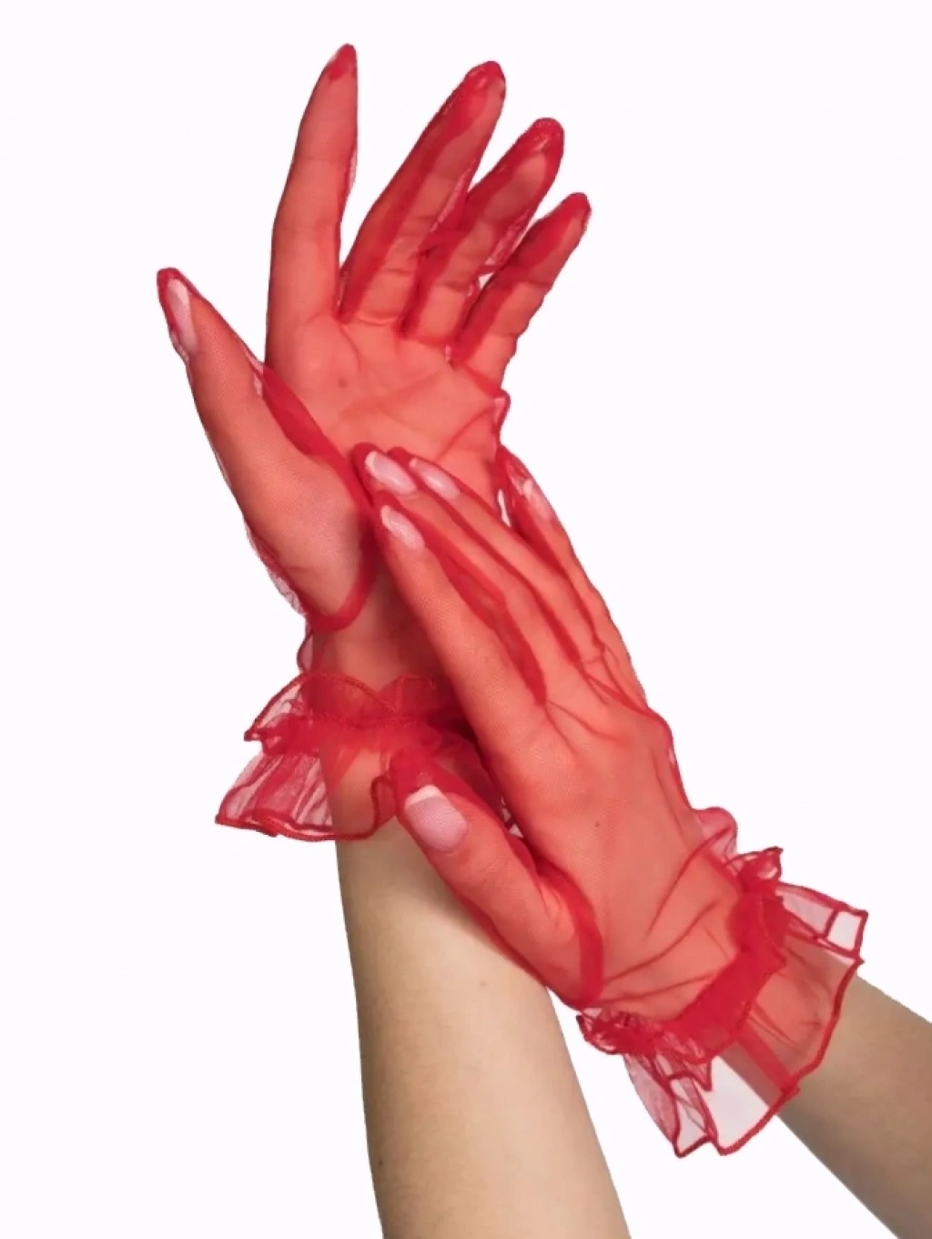 Kısa Boy Güpürlü Tül Eldiven Kırmızı Renk