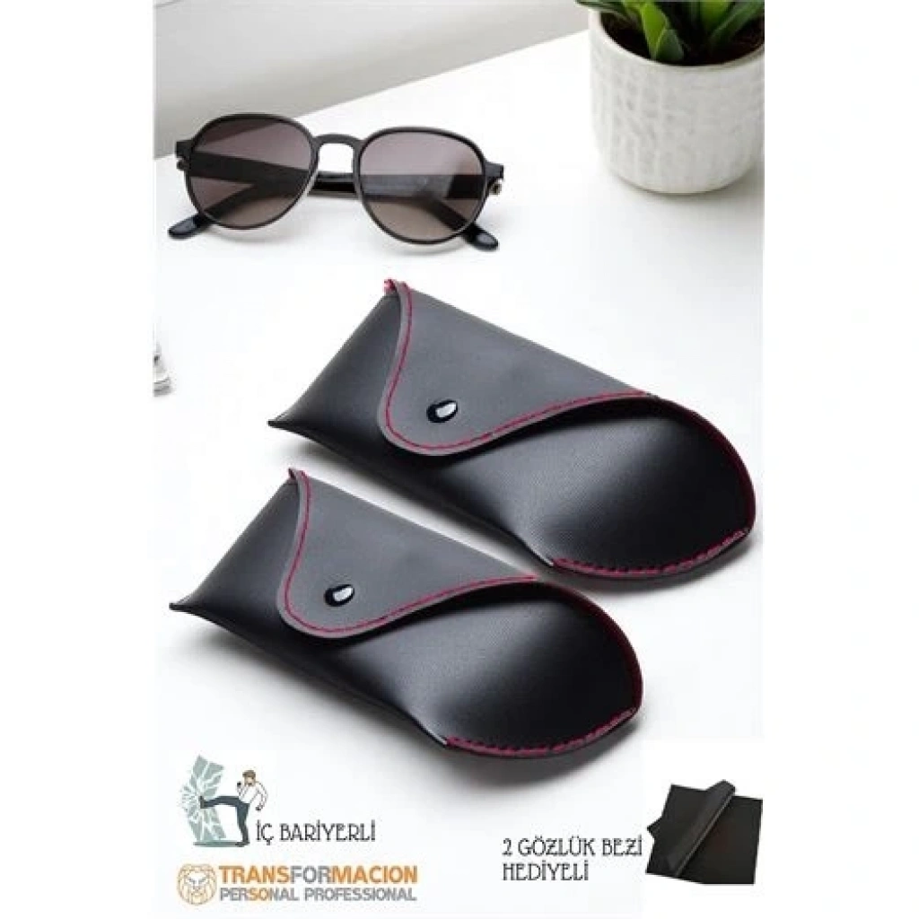 PU Suni Deri Gözlük Kılıfı – 2'li Paket + 2 Adet Silme Bezi Hediyeli
